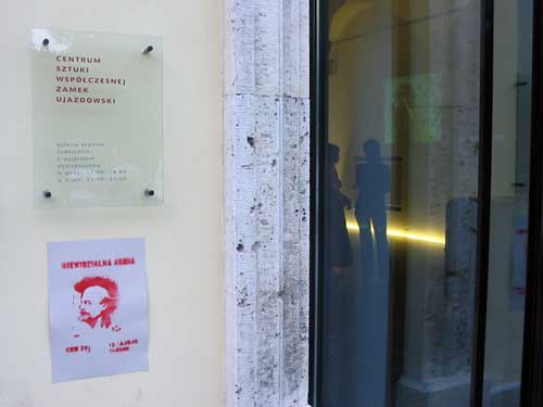 - obecne ożywienie zainteresowania przejawami ekspresji społecznej lat 80. skłania do przypomnienia tej specyficznej i bezpośrednio związanej z okolicznościami konfrontacji społeczeństwa z represyjnym systemem, formy komunikacji. w tym okresie szablonowe graffiti pojawiło się na murach, ścianach budynków, klatkach schodowych niosąc ze sobą przekaz wolnościowy, antymilitarny, jak również ekologiczny. pomysł wpisuje się w zainteresowanie, które wywołała gazeta stołeczna z szukaniem pamiątek ulicznych po czasach solidarnościowych na terenie warszawy. jednak jego realizacja straszna. otwarcie o g. 18, gdzie prace prezentowane są za pomocą rzutników na ścianach fasady zamku jak i na dziedzińcu zupełnie gineły. jakby nie było wiadomo, że o tej porze w naszym kraju jest jeszcze widno. hmmm, być może autor wystawy miał taki pomysł [tyt. wystawy 'niewidzialna armia'], aby prace tak odległe i zapomniane nie były dobrze widoczne. jedyną widzialną częścią ekspozycji jest projekcja, która odbywa się w hallu. proponujemy na wystawę wybrać się w godzinach pełnego zmroku (do g.21), które jednak pozwolą wypatrzeć prace, a jest na co. dobra lekcja historii stritu polskiego. wystawa czynna do 25.09 w godzinach od 18-21. więcej o wystawie: +++