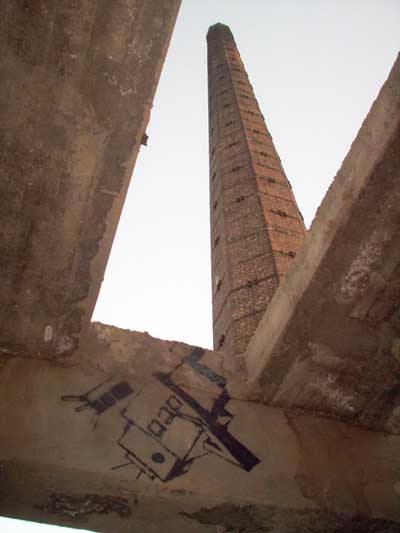 to tutaj właśnie znalazły swe schronienie i z dala od oczu ciekawskich powoli odejdą w zapomnienie. kilku "cichociemnych" osobników zaglądnęło w to miejsce i oko w oko stanęło z ostatnimy egzemplarzami ROBOCIZNY rozsianymi po różnych miejscach i na róznych elementach niszczejących murów tej lokacji. dodać trzeba, że budynek ten pochłonął juz kilka istnień ludzkich i w każdej chwili grozi zawaleniem, więc nie próbujcie tego w domu..