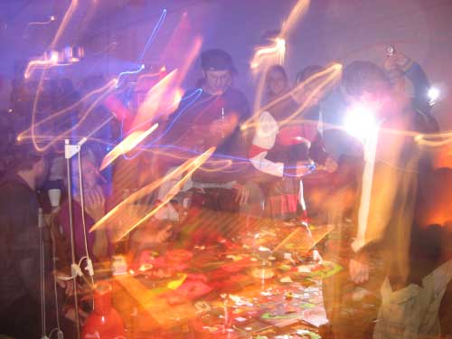 publiczność mocno się zaangażowała. powstało urocze prosie [w powietrzu dało się wyczuć obecność drugiego lokalnego prosiaka, ale nie chciał się ujawnić ;]. gotowego prosiaka postanowiliśmy wrzucić gdzieś podczas nocnego penetrowania uroczego miasta. jak się później okazało na świniaka miał ktoś cały czas oko - czyżby drugi świniak - gdyż jak rano się pojawiliśmy ze śniadaniem, po świni nie bylo już śladu. na fochu udaliśmy się na galerię rusz, gdzie w słoneczne popołudnie wrzuciliśmy drżące bzzzz. nono, liczym, że w przyszłym roku uda się nam jeszcze mocniej zabzzzzyczeć w toruniu. dzięki. festiwal wyobraźnia ekranu v13131 345 |