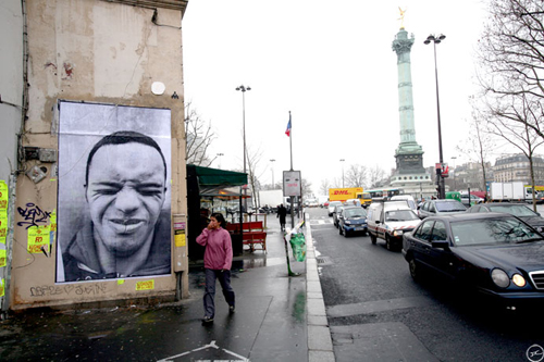 JR - przede wszystkim fotograf...od dawna jednak zajarany i kojarzony z kulturą uliczną. ulice i przestrzeń publiczną traktuje jako galerię, zwraca uwagę przechodniów ogromnymi fotografiami wyklejanymi na murach, budynkach i płotach ...