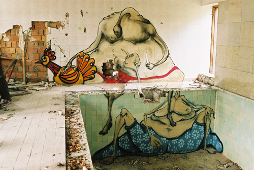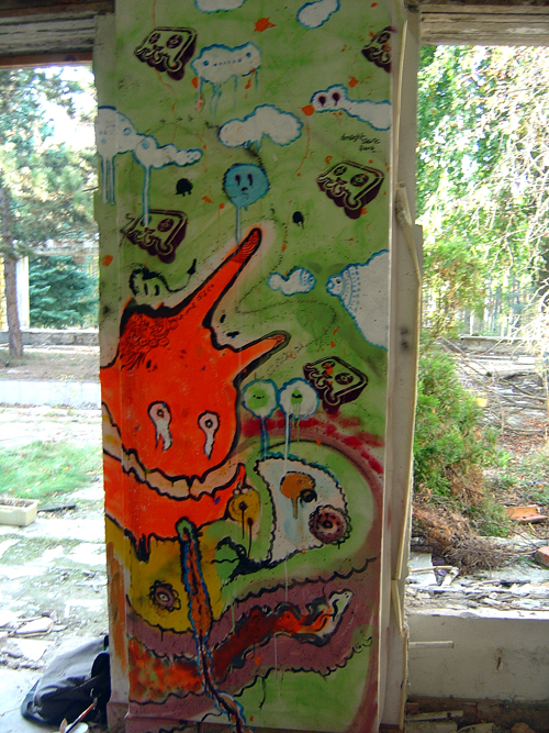 zeszłoroczny saj na hucie rozpoczął nie do końca oficjalną formułę, która infekując przestrzenie nieznane i niezbadane naszego otoczenia przeradza się powoli raczej w kameralną wycieczkę typu last minute. w dniu imienin edwarda 13 października odwiedziliśmy pierwszego sekretarza edzia gierka w jego leśnej rezydencji. do końca nie wiedzieliśmy kto się pojawi i w jakiej ilości, ale okazało się, że skład wycieczki (kwiatek, miesto, ixi color, red.szczoch, bufu, mru, sepe, tybex i bożek) zmieścił się spokojnie w trzech niewielkich samochodach. do edka zajechaliśmy z szykiem po okrągłym podjeździe wprost pod drzwi...w prezencie zostawiliśmy mu kilka obrazków, ograbiliśmy go z cukierków, wykąpaliśmy się w jego basenie i dokonaliśmy efektownej destrukcji. gospodarz był zachwycony i powiedział, że jeśli chcemy to możemy częściej do niego wpadać. więc proszę uzbroić się w cierpliwość i szukać leśnej drogi...drzwi do gierka stoją otworem!