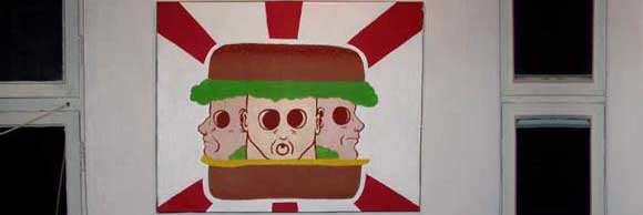 płótna vs. ściany. jeżeli chodzi o prace na płótnach, jest to następny krok mojej twórczości, sprowokowany raczej moja szkoła, a przy okazji bardzo lubię malować. płótna, mają trochę inna treść niż ściany, które są zdecydowanie bardziej freestylowe, z jednej strony spontaniczność która jest bardzo energetyczna, ale z drugiej chciałbym jednak zbliżyć się do tego co robię na płótnie, czyli przekazu informacji która jest w nich ukryta. litery. owszem czasami się pojawiają ale raczej po to by przekazać konkretna wiadomość, a szczerze mówiąc to wole jednak malować coś innego niż litery, co będzie charakterystyczne i być może zauważone przez zwykłych ludzi, a nie tylko wybrańców z sekty szpreja. start. moja przygoda ze stritem zaczęła się raczej standardowo od malowania liter, był to chyba 97 rok, raz wychodziło lepiej a raz gorzej :), a zmiana mojego podejścia do tego co robię, przyszła z uświadomieniem sobie, ze litery są zbyt monotonne i trzeba wymyślić cos charakterystycznego, co będzie wprost działać na widza przechodnia, i tak powstał motyw rakietki, którego dziś już rzadko używam. ważnym elementem był tez wpływ tomka69 www.fotolog.net/tomek69/ i last plak cru wiecej o wystawie: http://www.19kwietnia2005.prv.pl/ vlep[v]net |